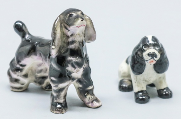• COLECIONISMO - Lote de 2 cães em porcelana. Med. 6 cm e 5 cm.