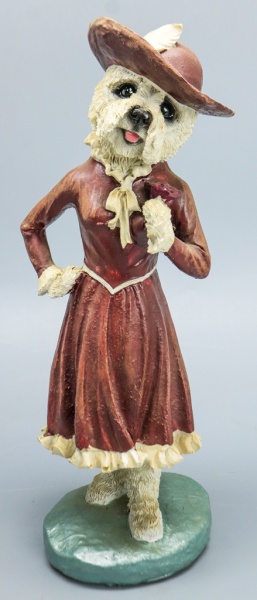 • COLECIONISMO - Cadela vestida de vestido em resina policromada. Alt. 27 cm.