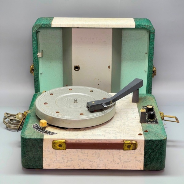 • COLECIONISMO - Antigo toca disco Sonata. Med. 18x23x32 cm. Não testado e sem garantia.