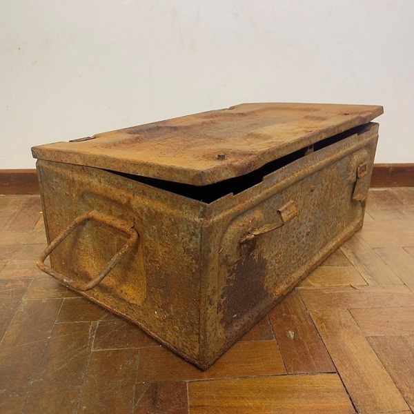 • COLECIONISMO - Antiga caixa de munição da Segunda Guerra Mundial, datada de 1940 - Inscrições internas  - AUSTRIA. Med. 25x62x37 cm. No estado.