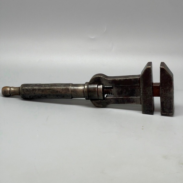 • FERRAMENTA -  Antiga chave ajustável tipo inglesa, com um design de mandíbula móvel.