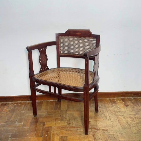 • MOBILIÁRIO - Cadeira em madeira nobre, marchetada, Art Decô, pequenas faltas, assento e encosto em palhinha. Med. 88x47x60 cm. Móveis Usados - Lote de móvel antigo e usado, podendo apresentar marcas de uso e desgaste natural do tempo. Há possibilidade de danos ocultos e ou outras imperfeições.  Não há garantia ou possibilidade de devolução após a aquisição. Recomenda-se inspeção prévia.