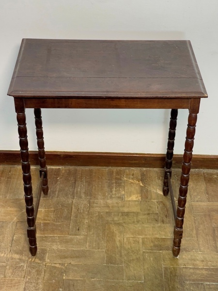 • MOBILIÁRIO - Mesa auxiliar em jacarandá, colunas torneadas. Med. 70x69x40 cm. Móveis Usados - Lote de móvel antigo e usado, podendo apresentar marcas de uso e desgaste natural do tempo. Há possibilidade de danos ocultos e ou outras imperfeições.  Não há garantia ou possibilidade de devolução após a aquisição. Recomenda-se inspeção prévia.