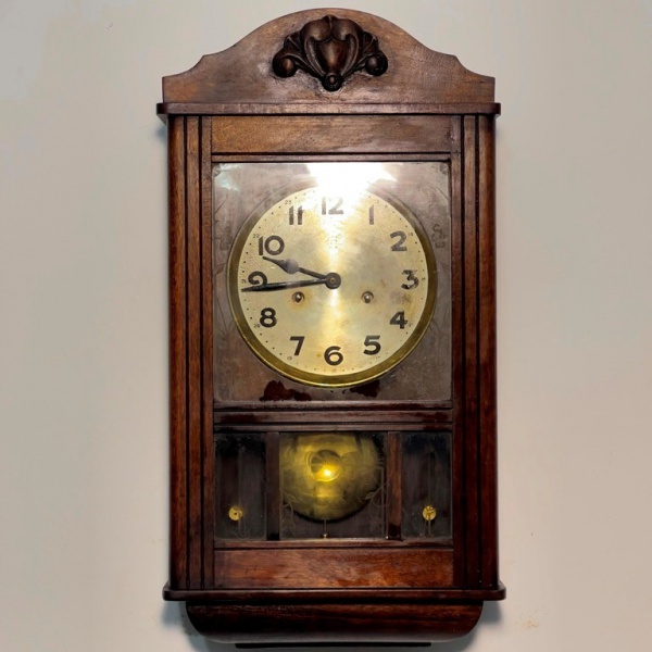 • RELÓGIO - Junghans - Antigo Relógio Alemão, de parede, marcado, em madeira nobre, mostrador pintado, 2 furos. Med. 37x32 cm. Não testado e sem garantia.