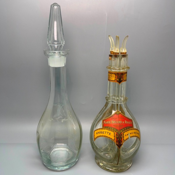 • DEMI CRISTAL - Lote de 2 licoreiras , sendo uma garrafa vazia de licores, dividida em 4 partes e licoreira alta. Med. 32 cm e 38 cm.