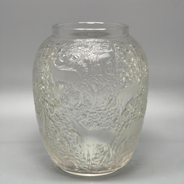 • DEMI CRISTAL - Vaso floreira decorado cervídeo. Med. 17x12x8 cm.