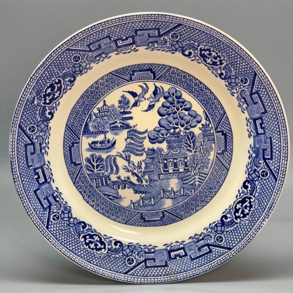 • PORCELANA - Prato decorativo em porcelana inglesa, decoração Azul Pombinho. Dia. 22,5 cm.  (raso).
