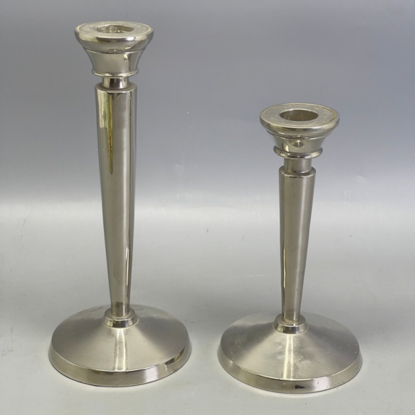 • METAL - Lote de castiçais em metal espessurados a prata. Maior 22 cm e menor 17  cm.