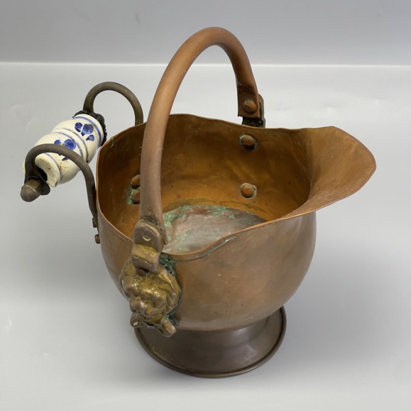 • COBRE - Delicado baldinho em cobre com acabamento de cara de leão. Med. 12x16x11 cm.