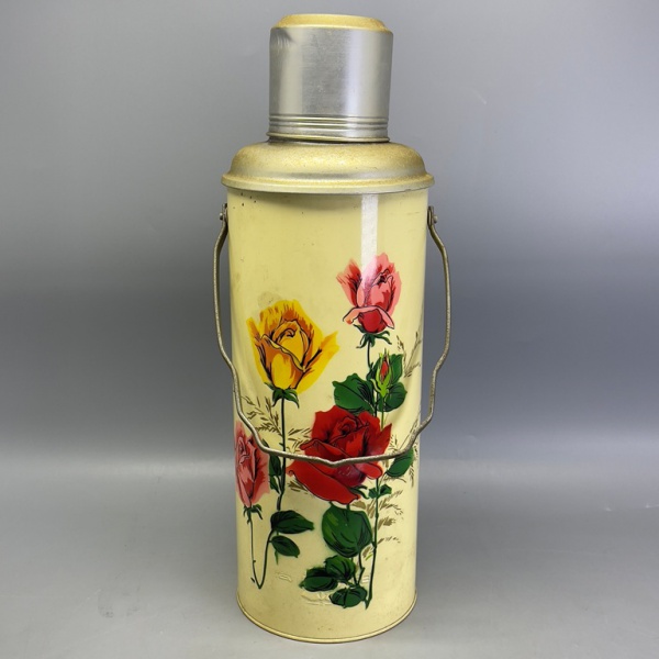 • DIVERSOS - Antiga garrafa térmica oriental decorada com flores policromadas. Alt. 49 cm.