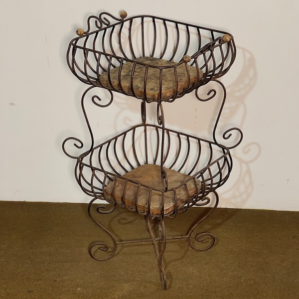 • MOBILIÁRIO - Fruteira em ferro e madeira. Med. 78x42x38 cm.