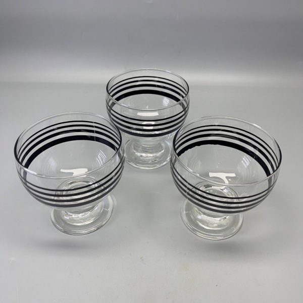 • DEMI CRISTAL -  Lote de 3 taças decorados com frisos pretos. Med. 10x10 cm.
