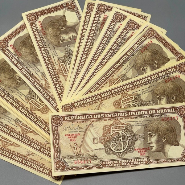 • NUMISMÁTICA - Lote de 19 cédulas de 5 CRUZEIROS - Em bom estado.