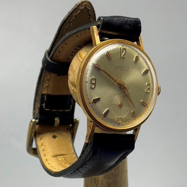 • RELÓGIO - Antigo relógio de pulso - LANCO SUIÇO AUTOMÁTICO - caixa em metal dourado com detalhes, pulseira em couro. Aparentemente funcionando, porém sem garantias. Marcas do tempo e de uso.