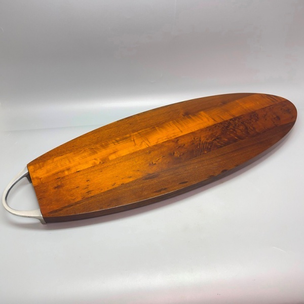 • DIVERSOS - Grande tábua para carne/peixe em madeira e alça em grosso alumínio.