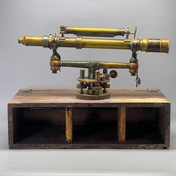 • DIVERSOS - Vintage. Telescópio americano em metal dourado da marca "W. & L.E Gurley". Apresenta inscrições. 50 x 30 cm. Comcaixa original em madeira. No estado. ????