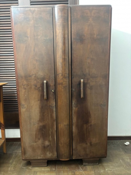 • MOBILIÁRIO - Antigo guarda-roupas em madeira nobre, folheada, prateleiras internas, 2 portas. Med. ???? - Marcas do tempo, de uso e descascados. Móveis Usados - Lote de móvel antigo e usado, podendo apresentar marcas de uso e desgaste natural do tempo. Há possibilidade de danos ocultos e ou outras imperfeições.  Não há garantia ou possibilidade de devolução após a aquisição. Recomenda-se inspeção prévia.