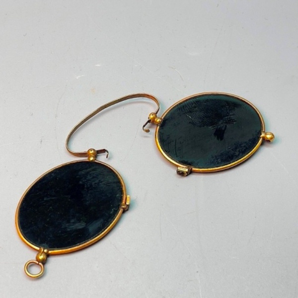 • COLECIONISMO - Antigo Pincenê (Pince-nez) com Lentes Escuras. Óculos de sol vintage, modelo sem hastes, fixação por clipe nasal. Med. 9 cm.
