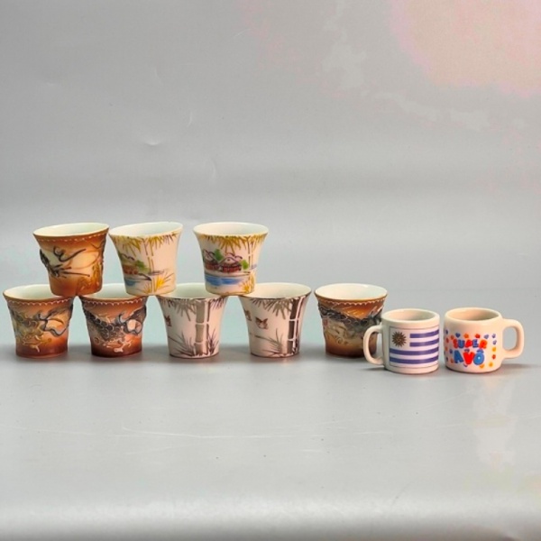 • DIVERSOS - Lote de 8 copinhos e 2 canecas, sendo e 4 Satsumo. Fios de cabelo. Med. 4 e 3,5 cm.  Bicados.