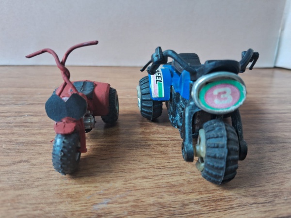 • Lote com 2 miniaturas de moto do tipo triciclo ATV fabricadas nos anos 80!.Se necessário solicitar mais fotos, vídeos ou perguntas para análise . Lembre-se de questionar sobre todas as dúvidas até o dia anterior ao dia do pregão ao vivo!Dúvidas devem ser enviadas via WhatsApp (24) 992260836 Grato