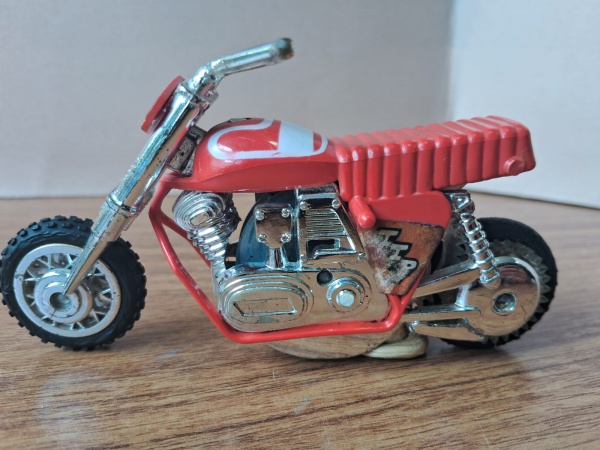 • Lote com 1 moto colecionável em die cast fabricada nos anos 70 pela Kenner modelo TTP Daredevil Cycles Turb -o-duster!!Se necessário solicitar mais fotos, vídeos ou perguntas para análise . Lembre-se de questionar sobre todas as dúvidas até o dia anterior ao dia do pregão ao vivo!Dúvidas devem ser enviadas via WhatsApp (24) 992260836 Grato