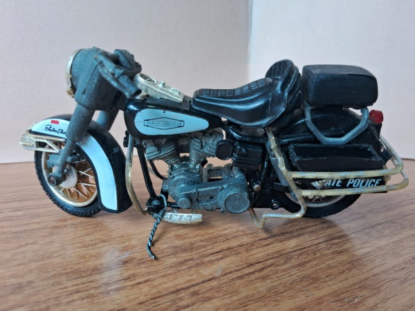 • Lote com 1 moto Harley Davidson Electra Glide colecionável em Die cast e plástico, fabricada pela Polistil nos anos 70 , em escala  1/15 muito pesada, porém com detalhes faltantes!!Se necessário solicitar mais fotos, vídeos ou perguntas para análise . Lembre-se de questionar sobre todas as dúvidas até o dia anterior ao dia do pregão ao vivo!Dúvidas devem ser enviadas via WhatsApp (24) 992260836 Grato