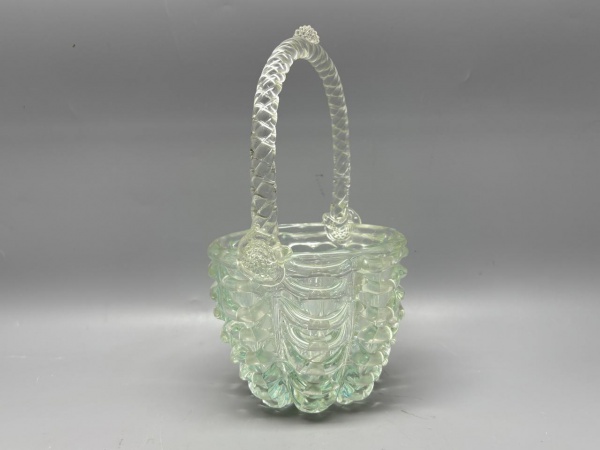• DEMI CRISTAL - Cesto /centro de mesa em demi cristal, decorado com relevo. Med. 16x14 cm.