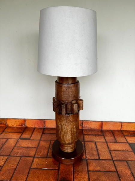 • ABAJUR - Abajur antigo em madeira nobre. Feito a partir de fragmento de moinho. Cúpula opcional. Med. 122x50 cm.