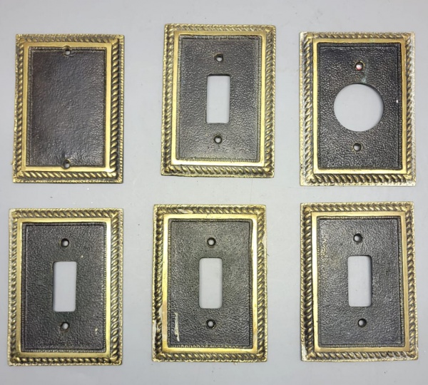 • BRONZE - Lote de 6 espelhos para interruptores, tampa cega e tormada redonda. Med. 12x9 cm. Marcas de uso.