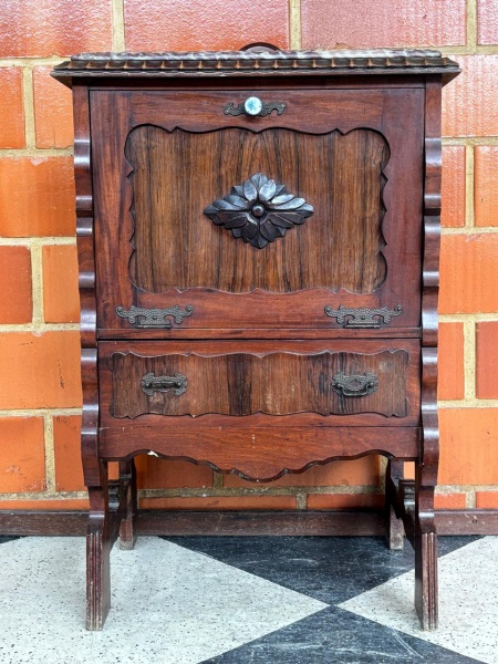 • MOBILIÁRIO - Bar estilo inglês, com porta basculhante, interior espelhado, puxador da porta em porcelana e tampo em maginifico mármore???. Med. 110x73x53 cm. Móveis UsadosLote de móvel antigo e usado, podendo apresentar marcas de uso e desgaste natural do tempo. Há possibilidade de danos ocultos e ou outras imperfeições.Não há garantia ou possibilidade de devolução após a aquisição. Recomenda-se inspeção prévia.